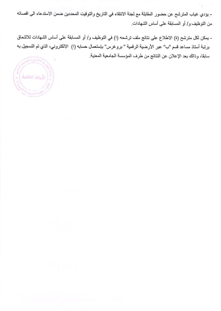 (للمرشحين الموجودين للجامعة المذكورة أعلاه من خلال منصة webtawdif المخصصة لحاملي شهادات الدكتوراه والماجستير)