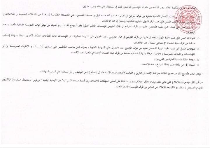 (للمرشحين الموجودين للجامعة المذكورة أعلاه من خلال منصة webtawdif المخصصة لحاملي شهادات الدكتوراه والماجستير)
