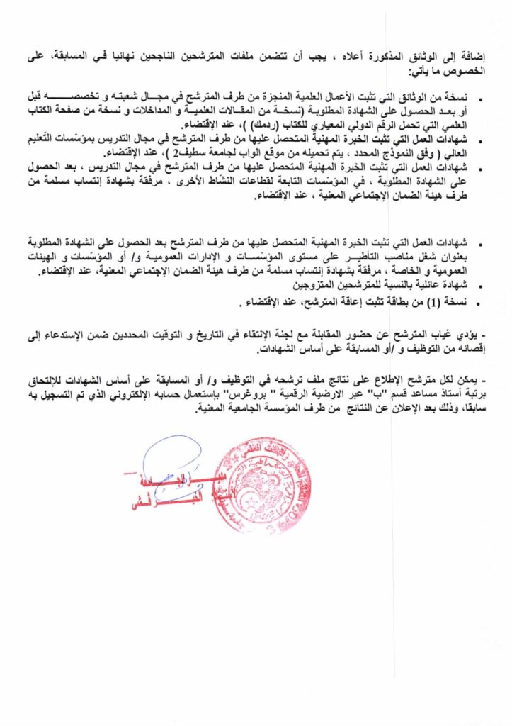 (للمرشحين الموجودين للجامعة المذكورة أعلاه من خلال منصة webtawdif المخصصة لحاملي شهادات الدكتوراه والماجستير)