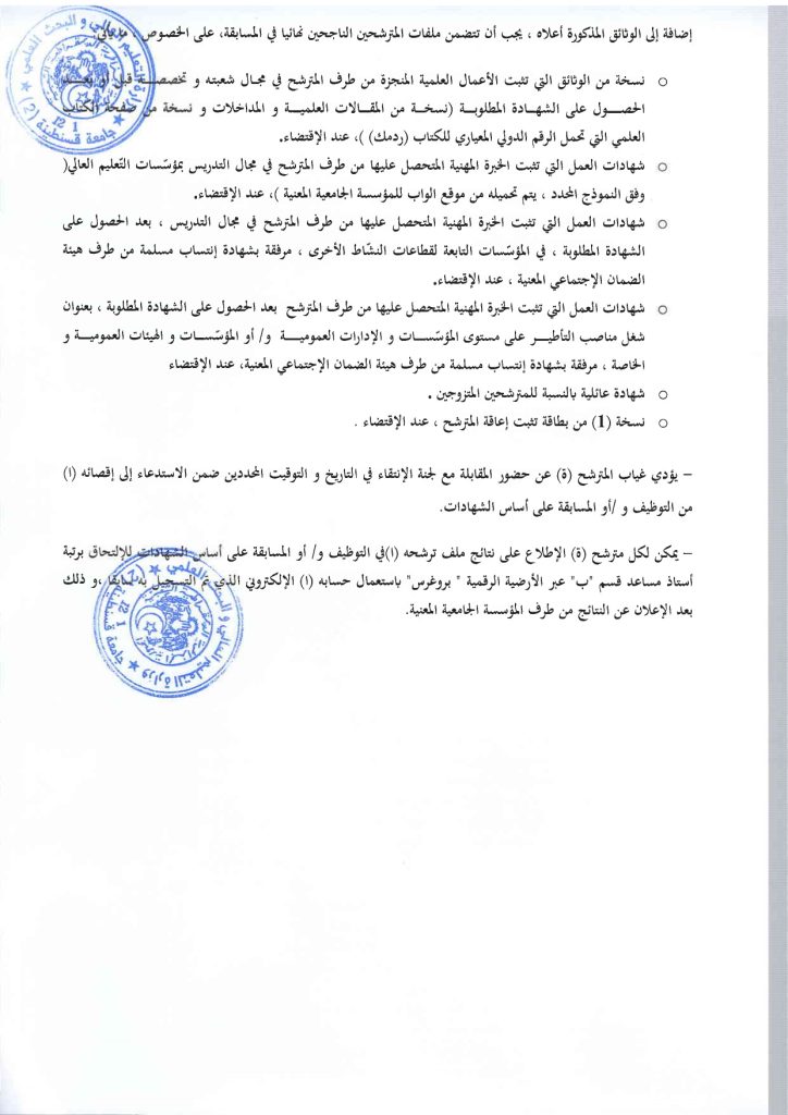 (للمرشحين الموجودين للجامعة المذكورة أعلاه من خلال منصة webtawdif المخصصة لحاملي شهادات الدكتوراه والماجستير)