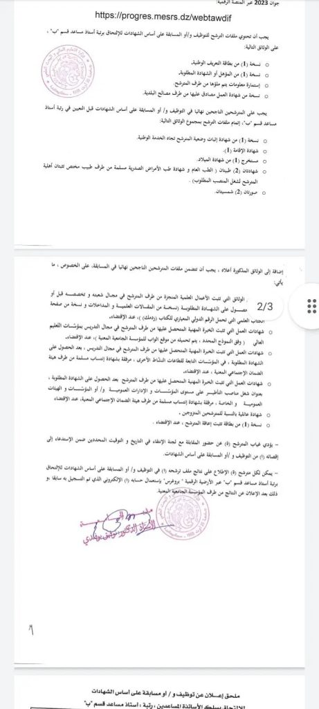 (للمرشحين الموجودين للجامعة المذكورة أعلاه من خلال منصة webtawdif المخصصة لحاملي شهادات الدكتوراه والماجستير)