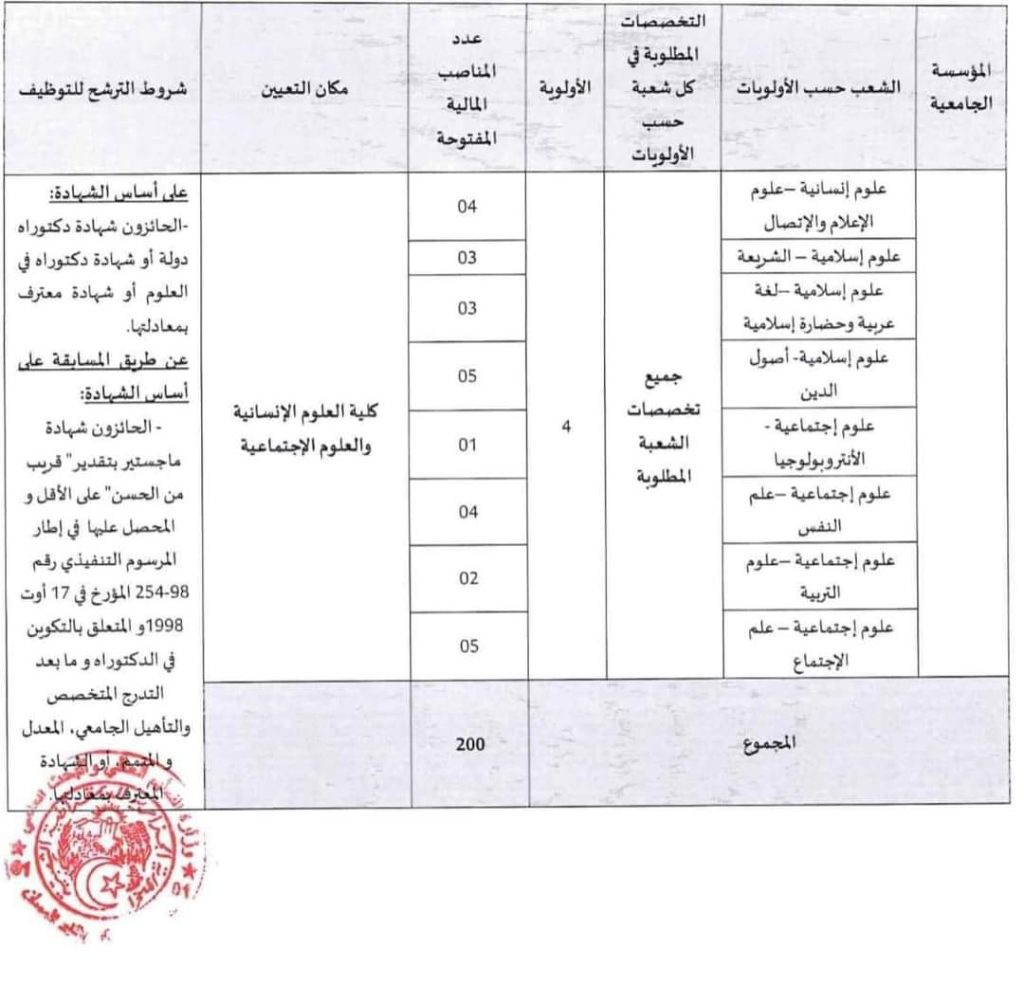 (للمرشحين الموجودين للجامعة المذكورة أعلاه من خلال منصة webtawdif المخصصة لحاملي شهادات الدكتوراه والماجستير)