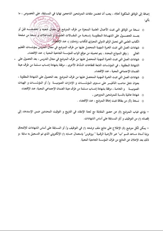 (للمرشحين الموجودين للجامعة المذكورة أعلاه من خلال منصة webtawdif المخصصة لحاملي شهادات الدكتوراه والماجستير)