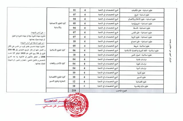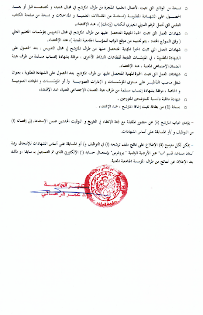 (للمرشحين الموجودين للجامعة المذكورة أعلاه من خلال منصة webtawdif المخصصة لحاملي شهادات الدكتوراه والماجستير)