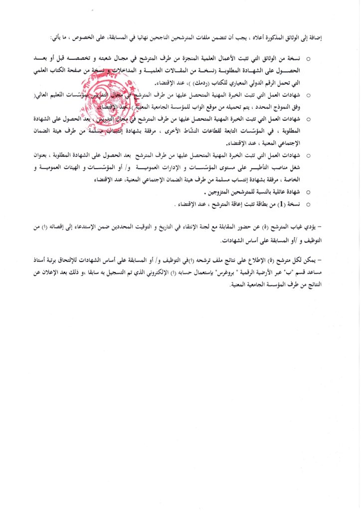 (للمرشحين الموجودين للجامعة المذكورة أعلاه من خلال منصة webtawdif المخصصة لحاملي شهادات الدكتوراه والماجستير)