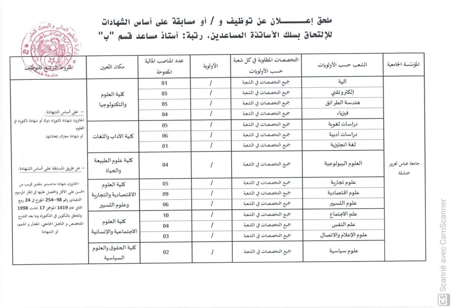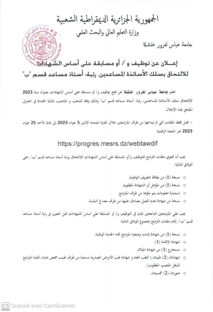 تعلن جامعة عباس لاغرور خنشلة عن التوظيف بناءً على الشهادة للالتحاق بسلك الأساتذة المساعدين برتبة: