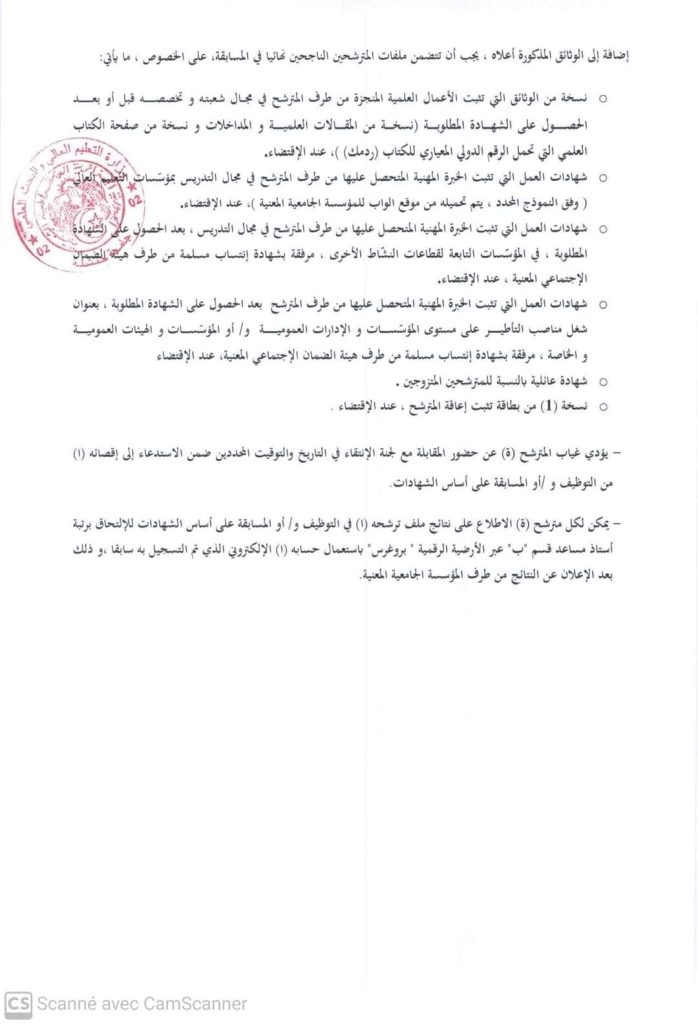 (للمرشحين الموجودين للجامعة المذكورة أعلاه من خلال منصة webtawdif المخصصة لحاملي شهادات الدكتوراه والماجستير)