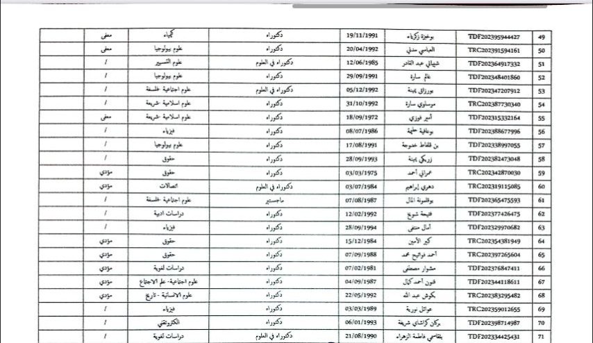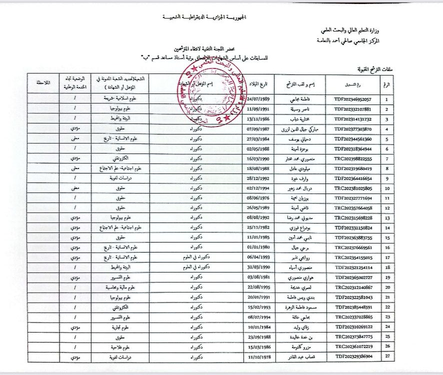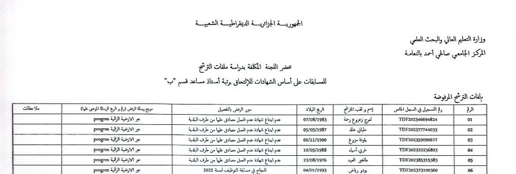 إعلان قوائم المرشحين المقبولين والمرفوضين لمسابقة التوظيف للأستاذ المساعد ب بمركز صالحي أحمد النعمة الجامعي.