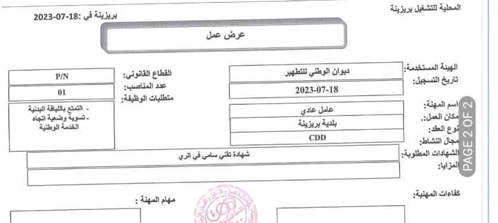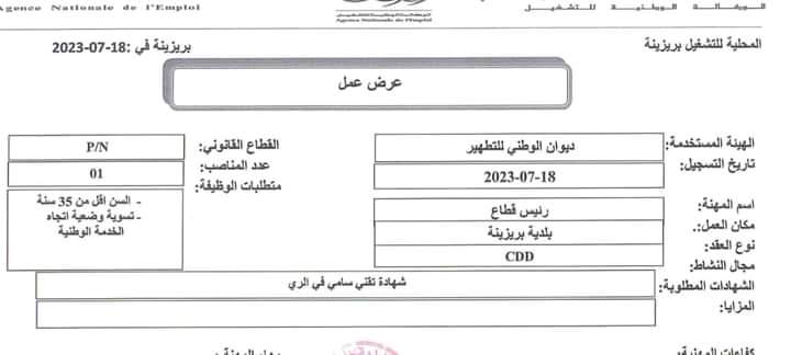 عرض خاص للباحثين عن عمل المسجلين بالملحق المحلي للتوظيف بروش بيض
