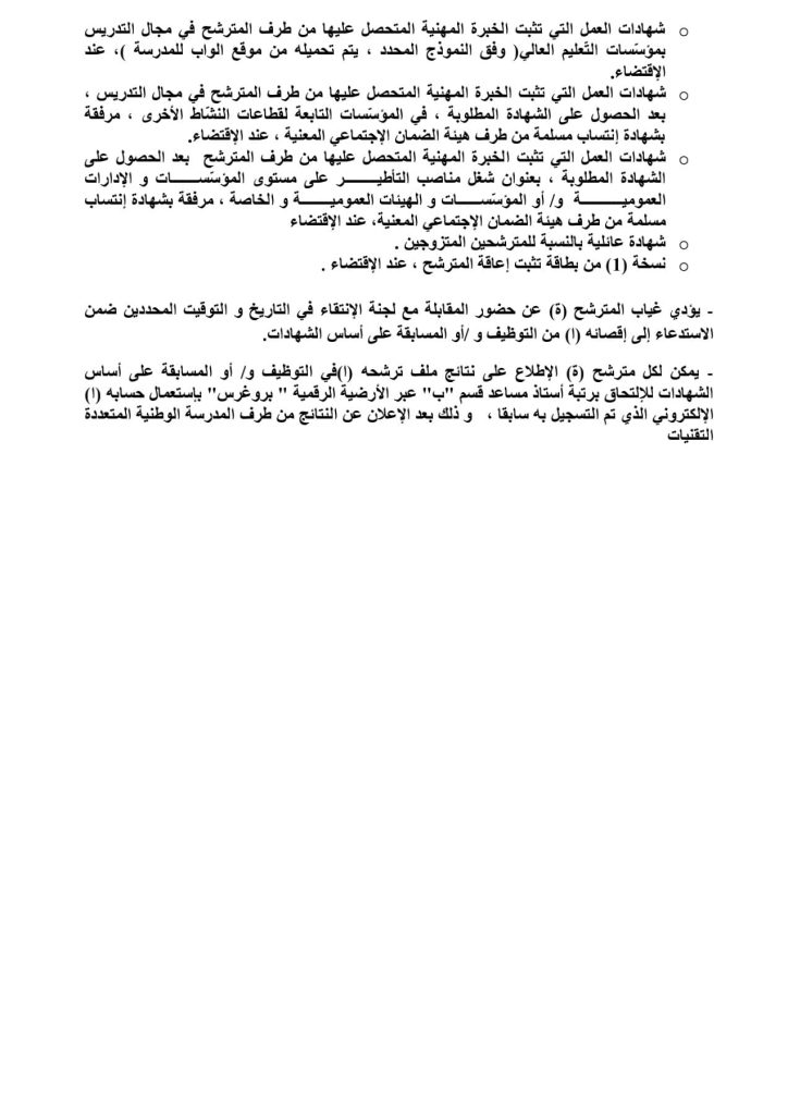 (للمرشحين الموجودين للجامعة المذكورة أعلاه من خلال منصة webtawdif المخصصة لحاملي شهادات الدكتوراه والماجستير)